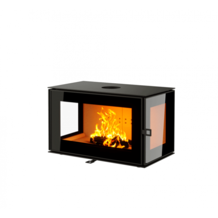 Боковые стенки печи-камина КУБ 3С 800 имеют двойное остекление и обеспечивают панорамный обзор на пламя.