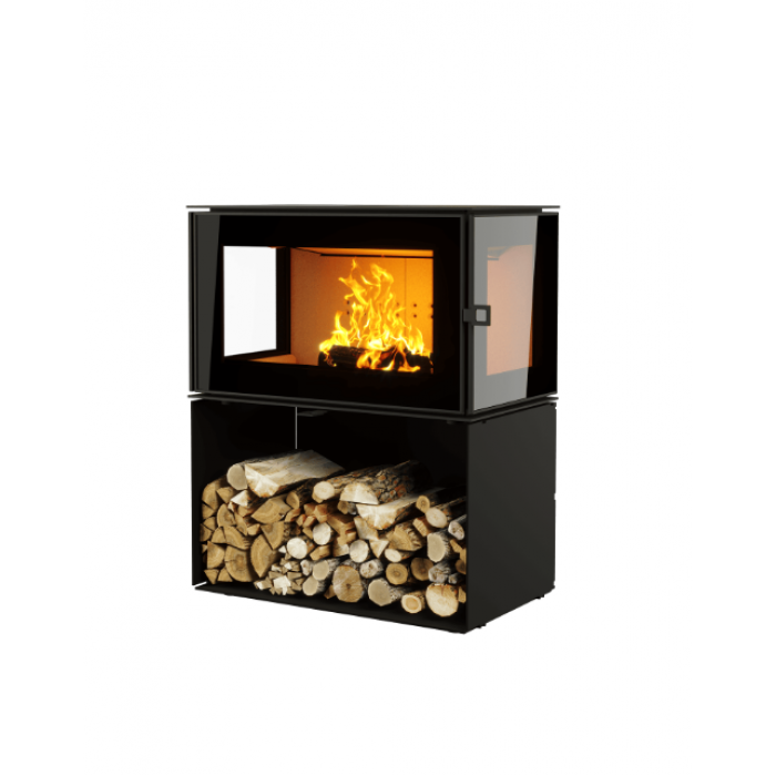 Боковые стенки печи-камина КУБ 3С 800 имеют двойное остекление и обеспечивают панорамный обзор на пламя.