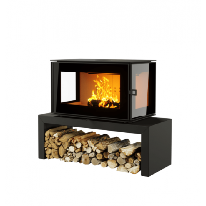 Боковые стенки печи-камина КУБ 3С 800 имеют двойное остекление и обеспечивают панорамный обзор на пламя.